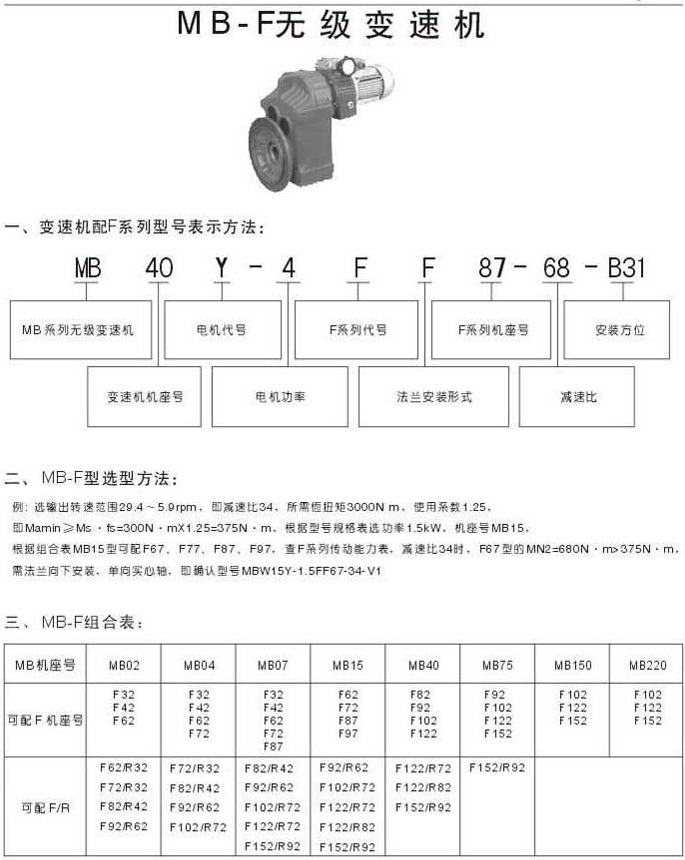 MB-F無(wú)級(jí)變速機(jī)變速機(jī)配F系列型號(hào)表示法MB-F選型方法MF組合表