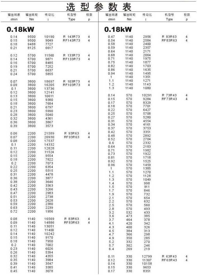 選型參數(shù)表0.18kW 46